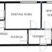 Prostorije: hodnik (iz koga se ulazi u sve prostorije), kupatilo sa prirodnom ventillacijom, spavaća soba, dnevna soba koja ima izlaz na zastakljenu terasu, kuhinja sa trpezarijom.
